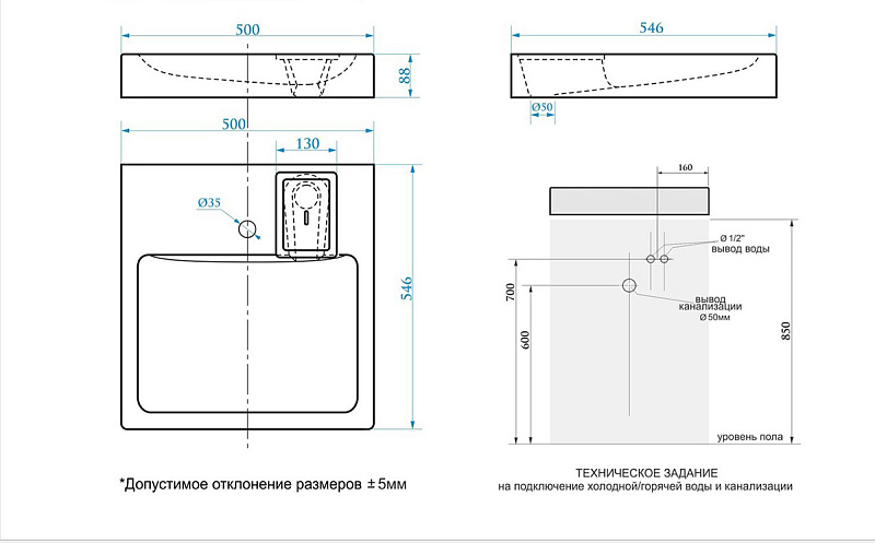 Раковина комплектуется кронштейнами и