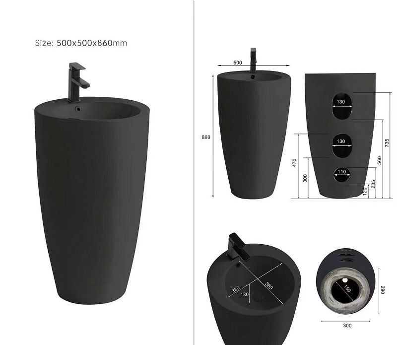 Оптимальные размеры: Габариты 500х500х860 мм делают эту раковину идеальным выбором для ванных комнат различного размера. Высота 860 мм обеспечивает комфортное использование для большинства пользователей, а ширина и глубина чаши достаточны для удобного выполнения гигиенических процедур.