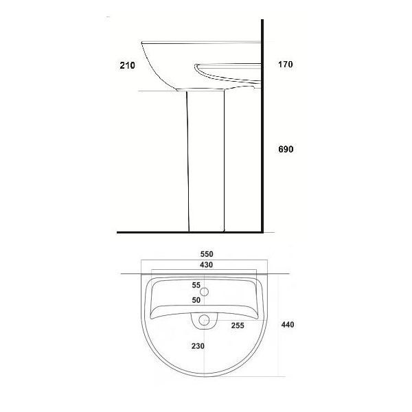Раковина Sanita Эталон 55, белая (ETL55SAWB01)