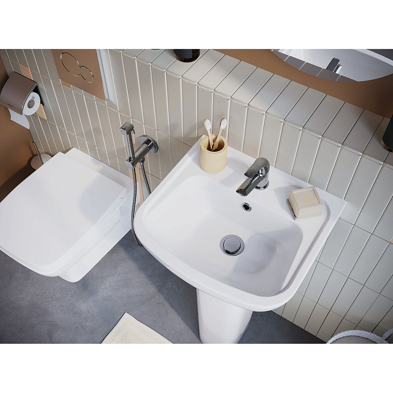 —Раковина подвесная Santek "Лонги-45" 455х420х200 фарфор, 1 отверстие под смеситель, белая (1.WH50.1.753)