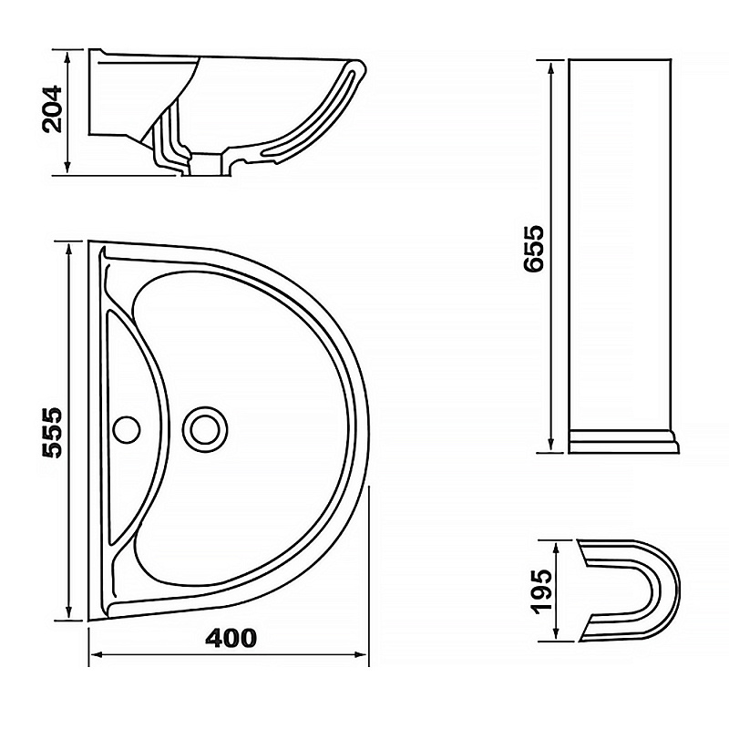 Раковина подвесная Оскольская керамика Престиж-55 с постаментом (45101100302)