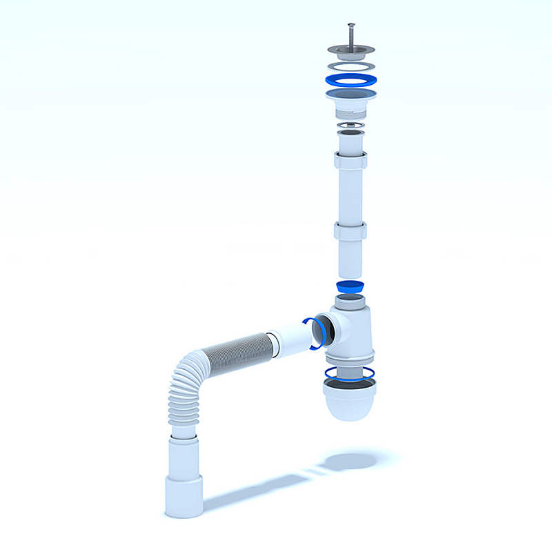 Форма сифона позволяет поддерживать хорошую пропускную способность слива сточной воды, выполняя свою главную функцию - формирование гидрозатвора для отсечения неприятных запахов из канализации. Конструкция позволяет легко, без демонтажа, снять отстойник (стакан) и почистить сифон в случае засорения, достать случайно упавшие в слив раковины мелкие ценные вещи. Сифон прост в установке.