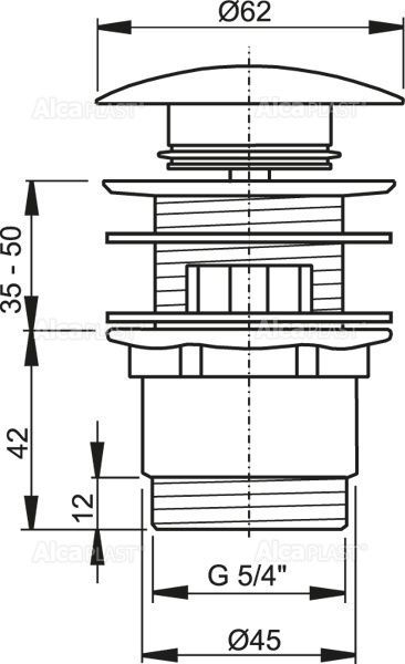 —Донный клапан для раковины Alcadrain click/clack 5/4", цельнометаллический с большой заглушкой, хром (A390)