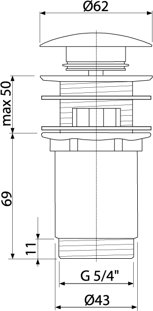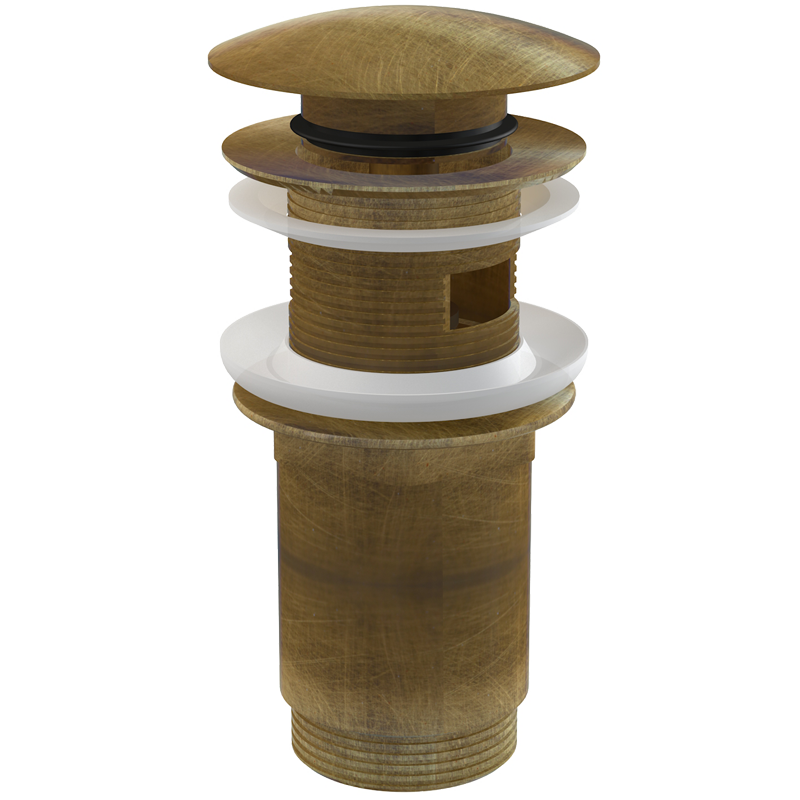 Донный клапан для умывальника CLICK/CLACK 5/4", цельнометаллический с переливом и большой заглушкой,бронза-antic
