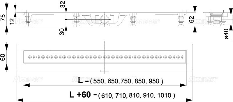 —Душевой лоток Alcadrain Simple с порогами для перфорированной решетки (APZ9-850M)
