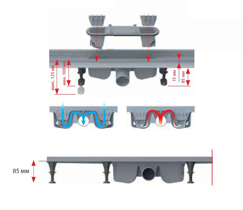 ¡ Сливные трапы из особопрочного пластика, который устойчив к морозам и химии
