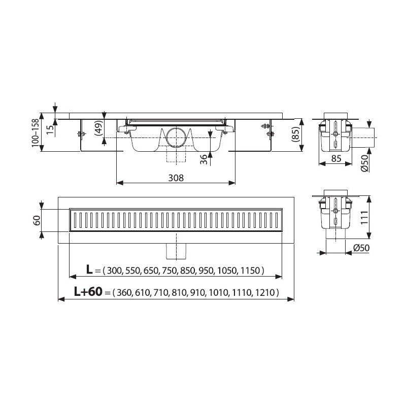 Водоотводящий желоб горизонтальный выпуск Alcadrain (APZ1-1050)