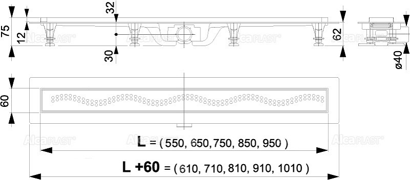 легкоразборный, с возможностью прочистки желоба вплоть до сточной трубы (ø40 мм)