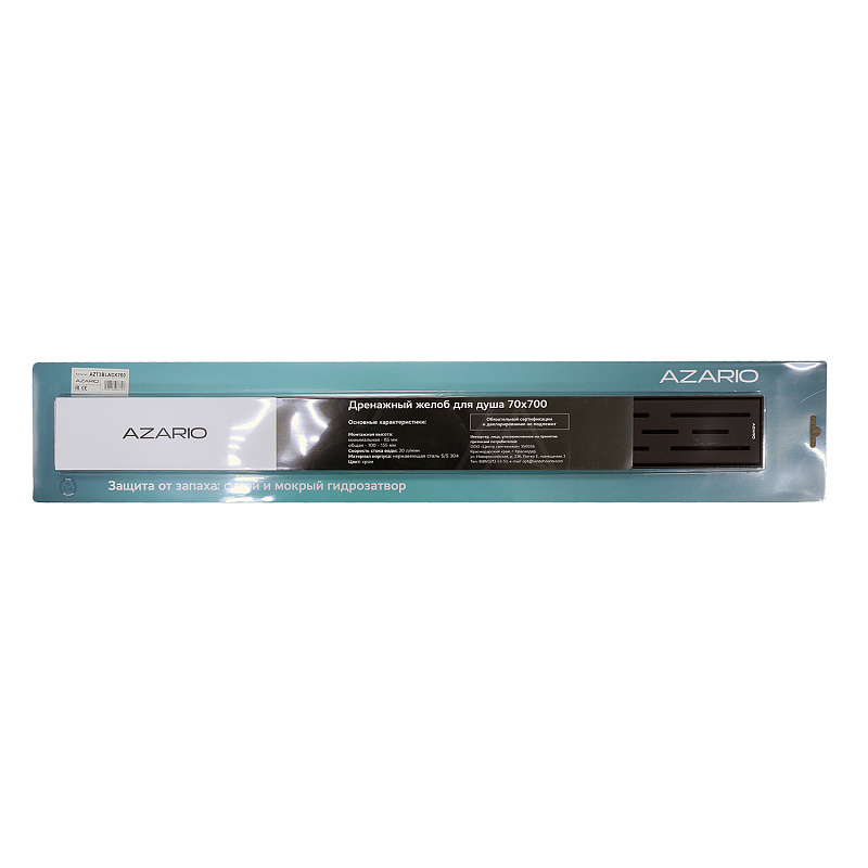 Душевой желоб AZARIO  700 мм сухой/мокрый гидрозатвор с решеткой черный с горизонтальным выходом D40 (переходник D50), поворотным сифоном из ABS пластика  - идеальное решение для эффективного сбора, и отведения жидкости в канализацию с поверхности пола. Они предназначены для монтажа в ванных комнатах, душевых, санузлах квартир, загородных домов и общественных местах.
