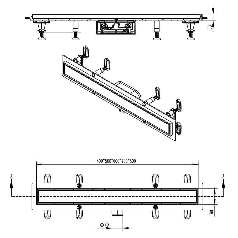 —Душевой лоток AZARIO 500 мм, D40(50), металлическая перфорированная решетка, пластиковый желоб, комбинированный затвор (AZT13500)