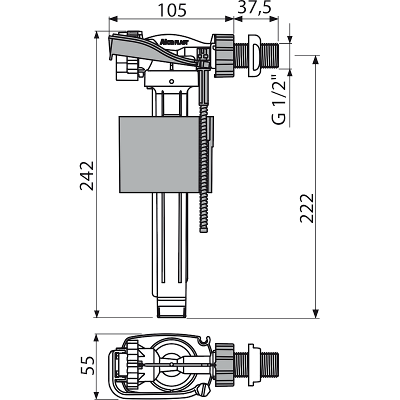 —Впускной механизм с боковой подводкой и металлической резьбой (A160-1/2")