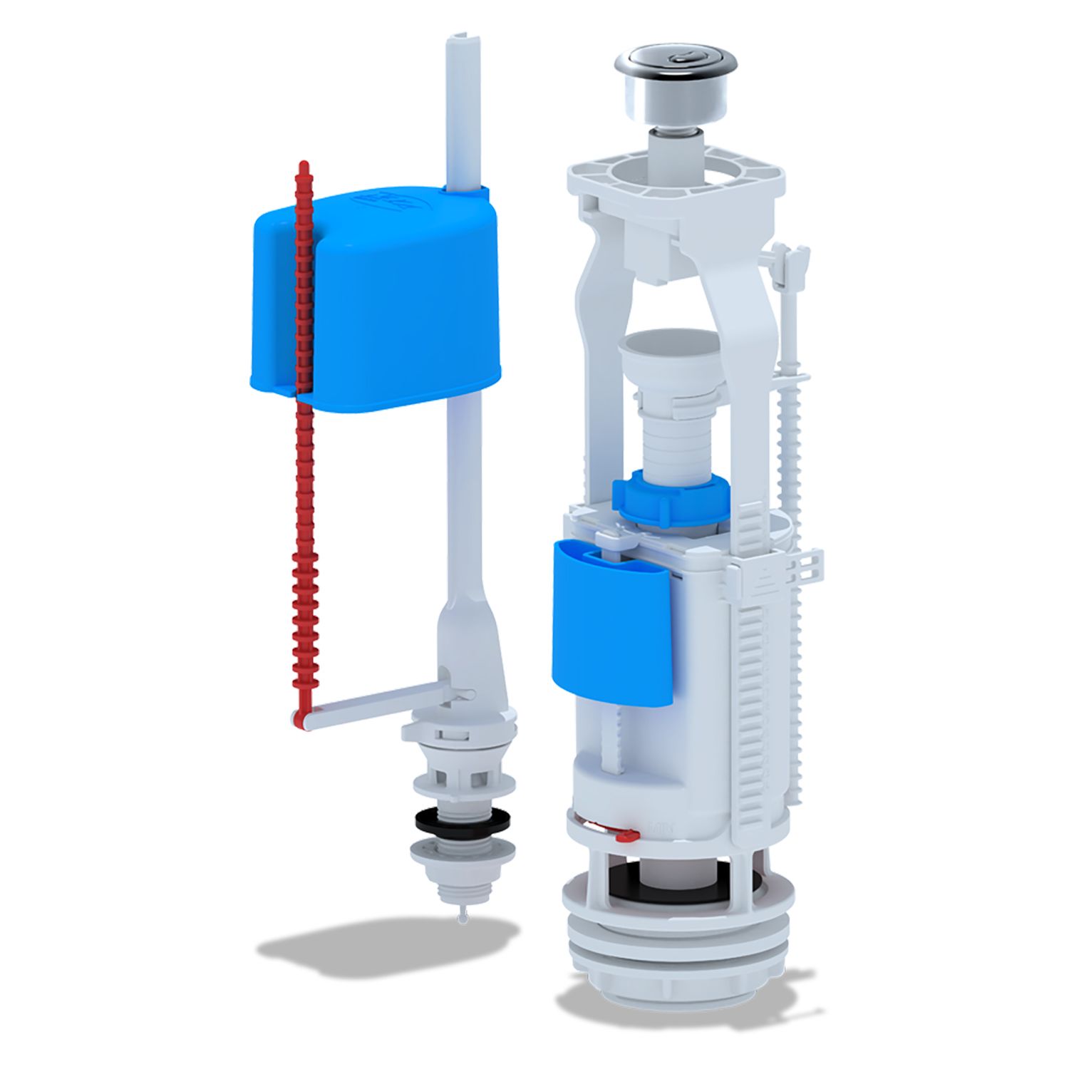 Сливной механизм металлизированная кнопка с двойным режимом слива, регулировка по высоте 290-410 мм