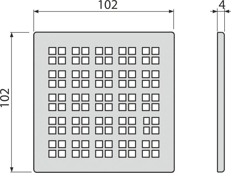 РЕШЕТКА ДЛЯ CЛИВНЫХ ТРАПОВ ИЗ НЕРЖАВЕЮЩЕЙ СТАЛИ 102×102 ММ, НЕРЖАВЕЮЩАЯ СТАЛЬ