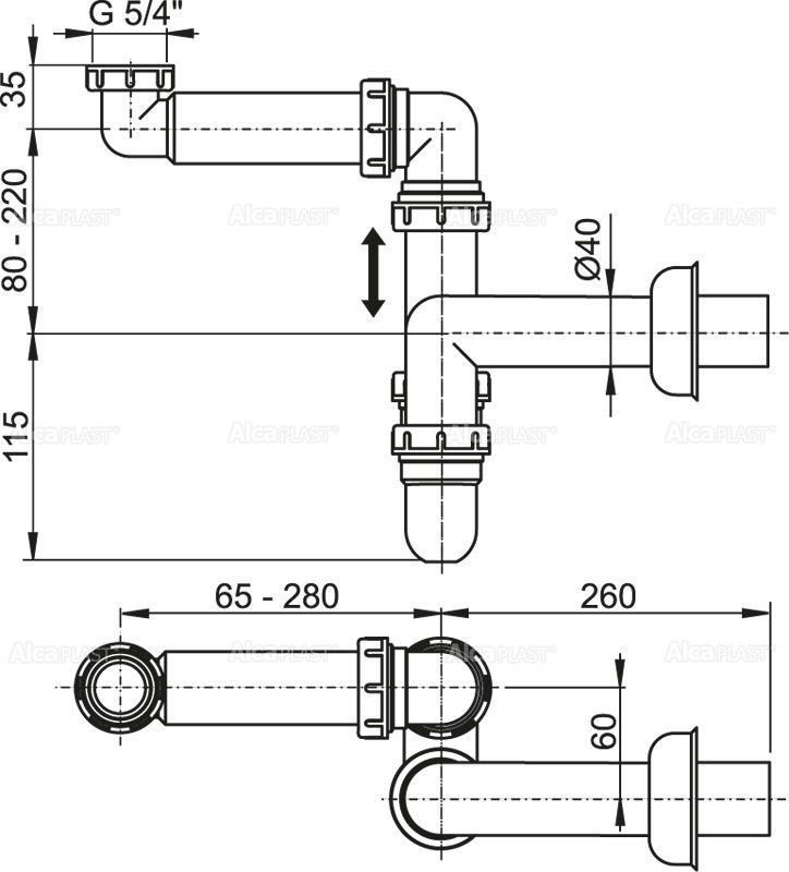 CИФОН ДЛЯ УМЫВАЛЬНИКА ЭКОНОМЯЩИЙ ПРОСТРАНСТВО С НАКИДНОЙ ГАЙКОЙ 5/4"