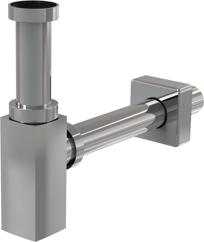 Сифон для умывальника Ø32 DESIGN, цельнометаллический, квадратный.