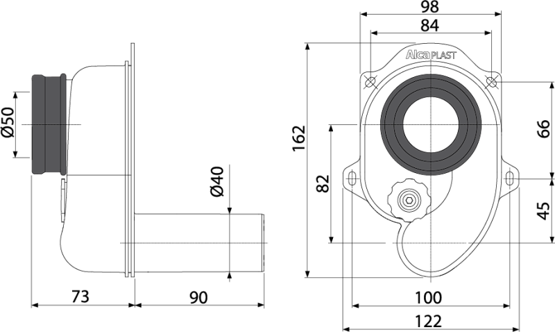 —Cифон для писсуара Alcadrain горизонтальный (A45B)