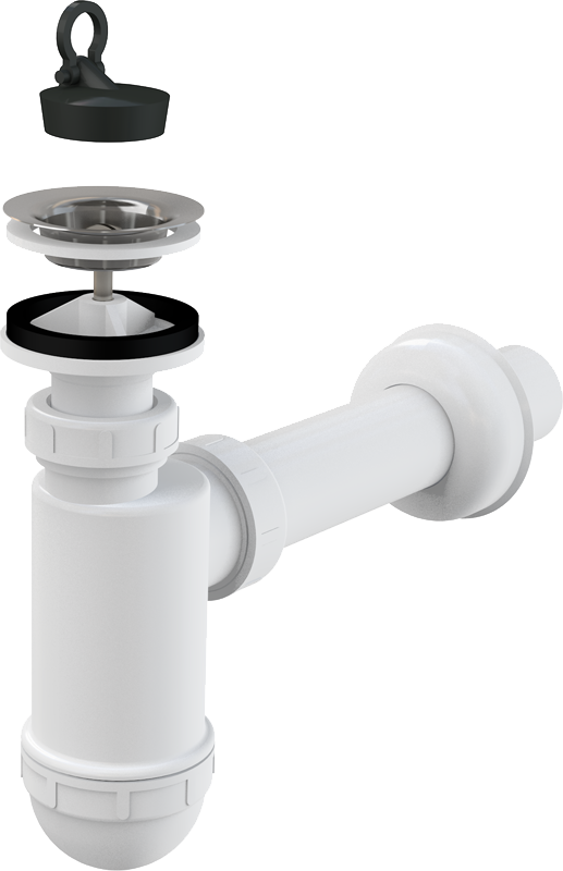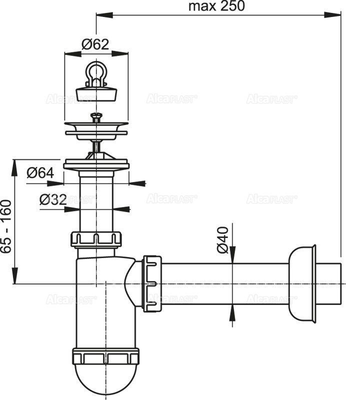 —Сифон для раковины Alcadrain 40 мм с нержавеющей peшeткой 63 мм (A41)