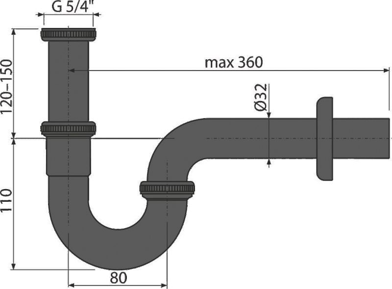 СИФОН ДЛЯ УМЫВАЛЬНИКА DN32, U-ФОРМА С НАКИДНОЙ ГАЙКОЙ 5/4", ЧЕРНЫЙ-МАТ
