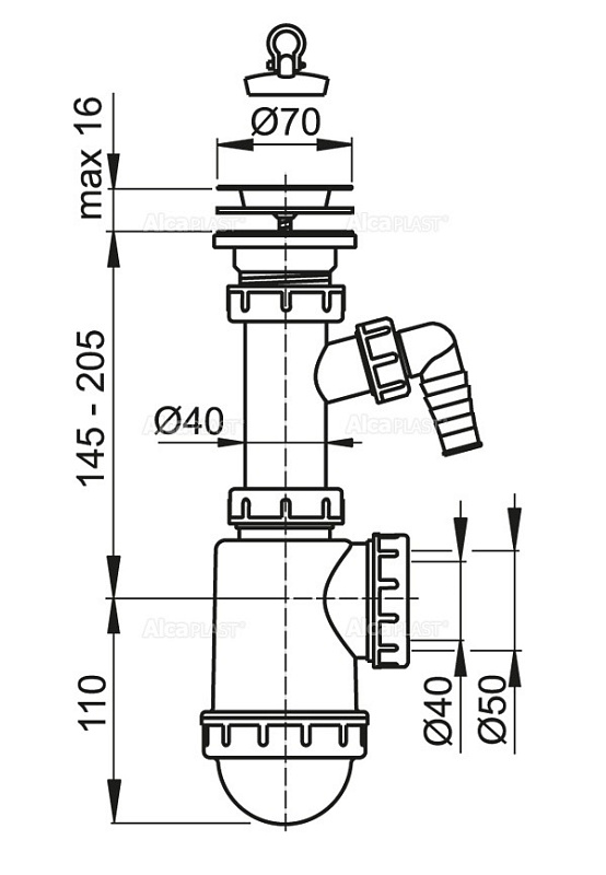 —Сифон для мойки Alcadrain с нержавеющей решеткой и штуцером (A441P -DN50/40)