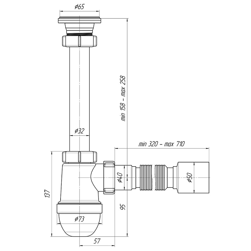 • Сифон сливной АНИ пласт C1010 для умывальников и раковин с диаметром слива 40-52 мм