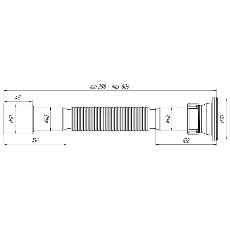 —Сифон Ани Пласт гофрированнй 1 1/2 *40-50 396-806мм (G106)
