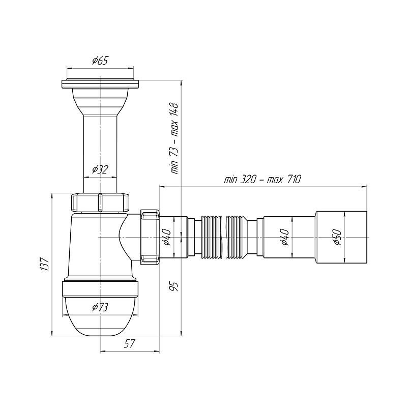 • Комплектуется гибкой трубкой 40*40/50мм для отвода в канализацию