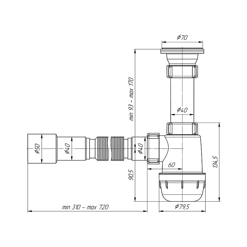 • Сифон сливной АНИ пласт A0115 для кухонных моек с диаметром сливного отверстия 50-60 мм