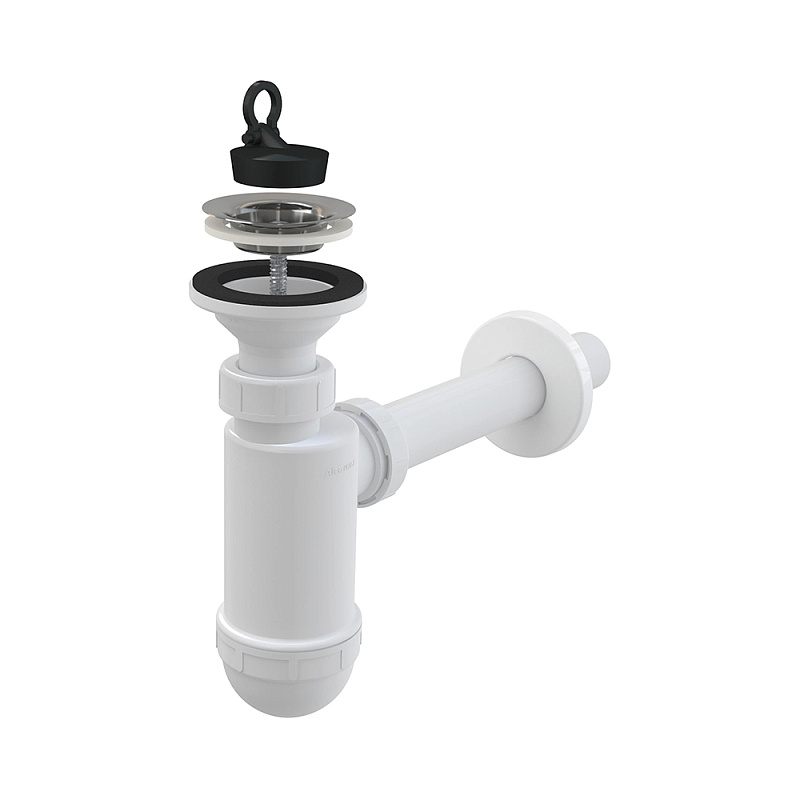 Сифон для раковины Alcadrain Ø32 с нержавеющей peшeткой Ø63 (AG210512432)