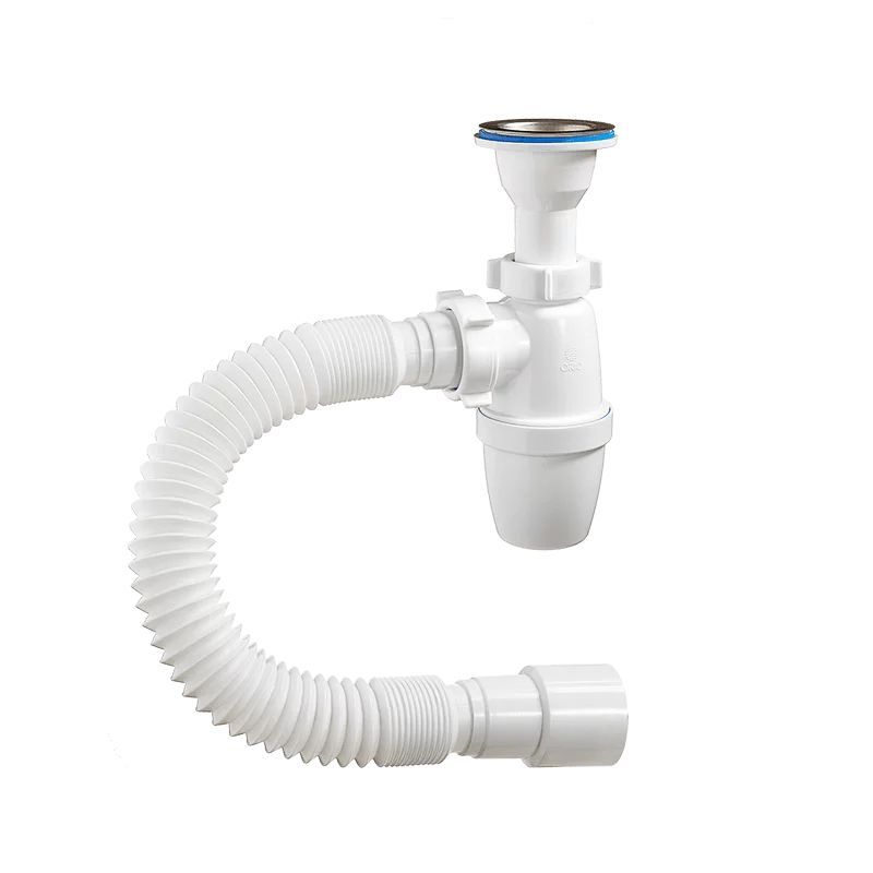 —Сифон бутылочный ОРИО малый корпус с литым выпуском 1 1/2 х 40, с гибкой трубой 40-40/50 (А-32019)