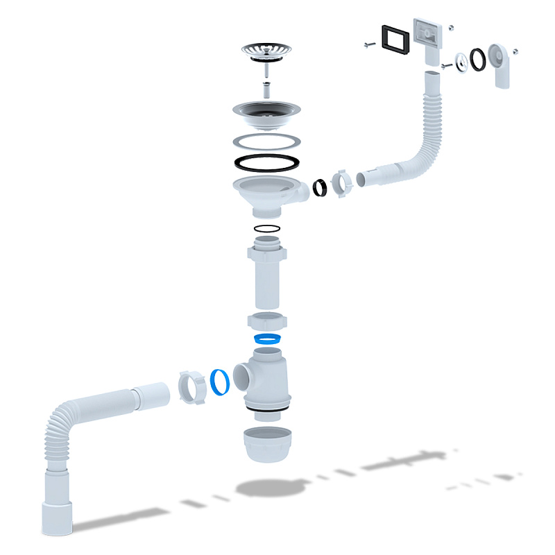 Гофры и отводыДонные клапаныДушевые лоткиМеханизмы смываСливы-переливыТрапыРешетки для душевых лотков и траповКомплектующие