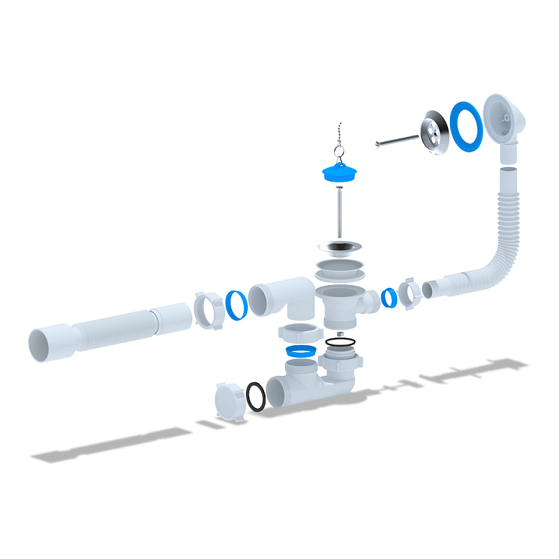 • Для ванн с отверстием слива Ø50 мм и отверстием перелива от Ø36 до 63 мм (стандартное отверстие 50 мм)