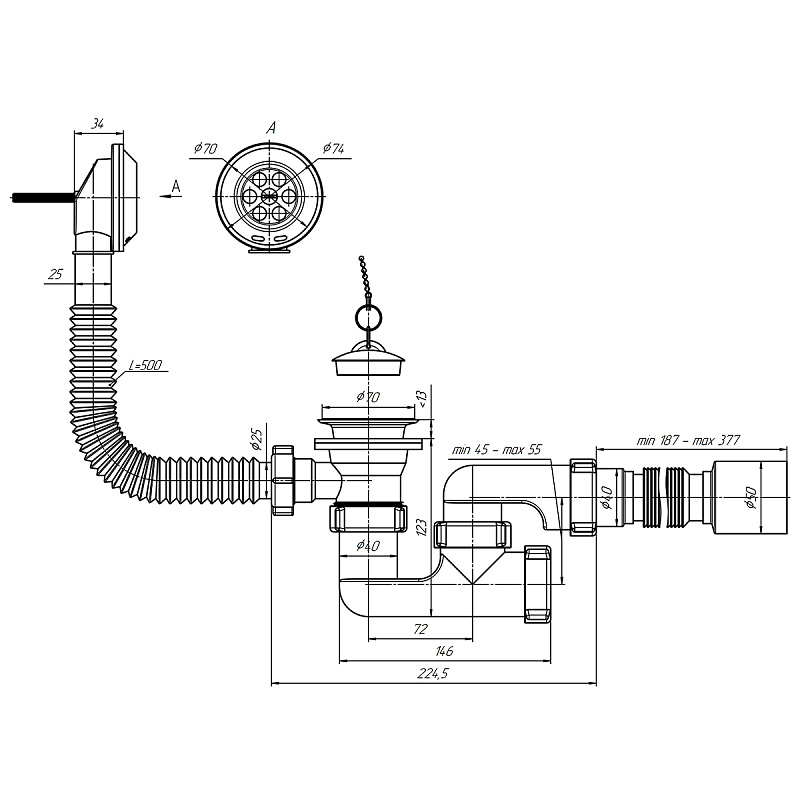 • Тип сифона: регулируемый