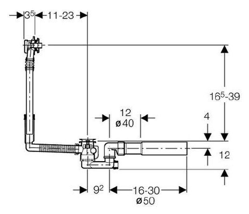 Высота гофротрубы до слива:16,5-39 см.