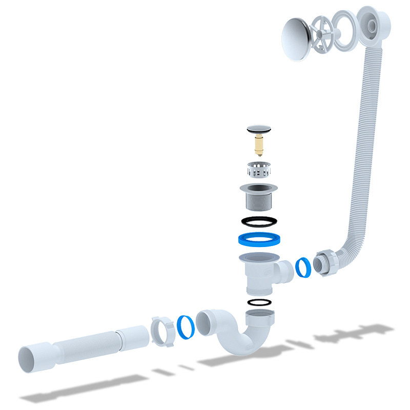 • Для ванн с отверстием слива Ø50 мм и отверстием перелива от Ø48 до 62 мм (стандартное отверстие 50 мм)