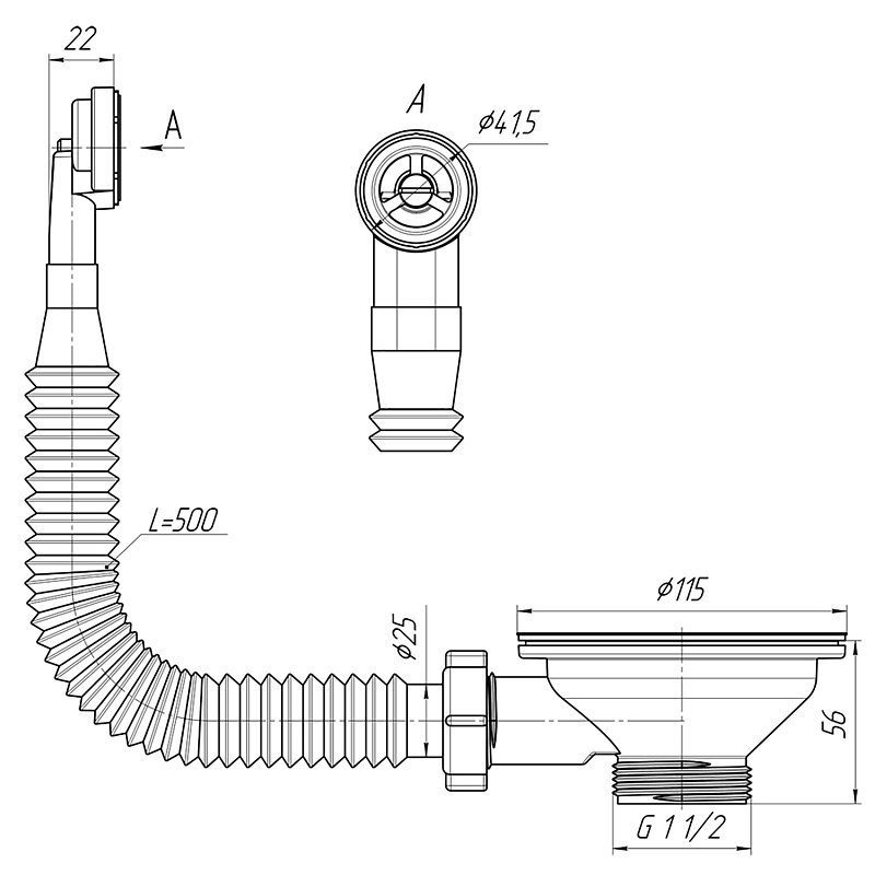 • Выпуск для кухонной мойки АНИ пласт N320S под отверстие слива 90-98 мм, с гибким круглым переливом, с нержавеющей решеткой 115 мм. Используется для кухонных моек из композитных материалов со сливным отверстием 90-98 мм