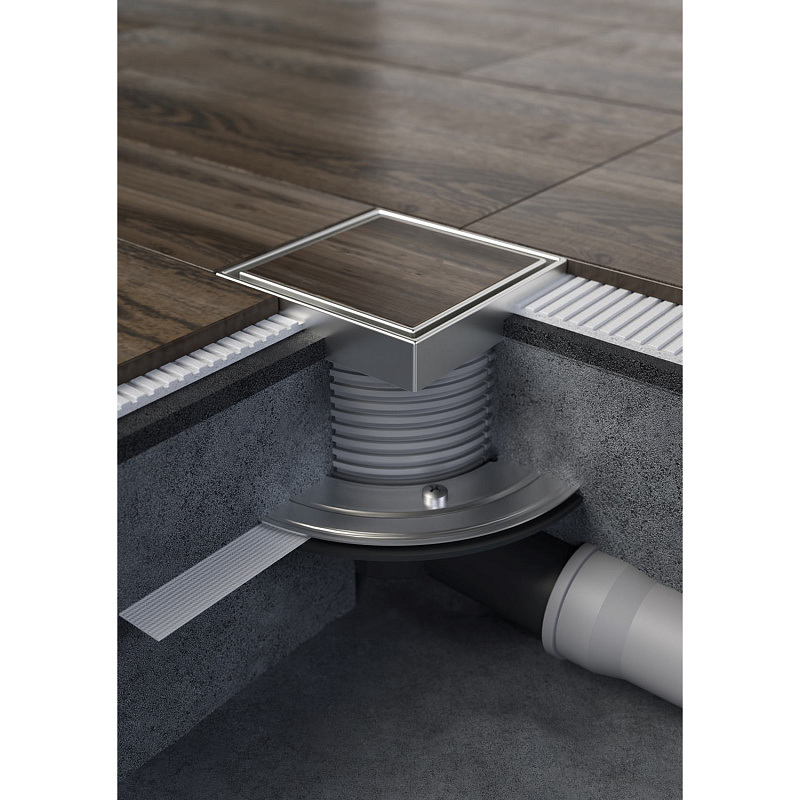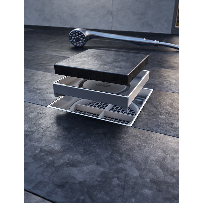 —Душевой трап Azario 125х125 Dn 50 горизонтальный выпуск, с решеткой под плитку, гидрозатвором (AZ-C381 A)