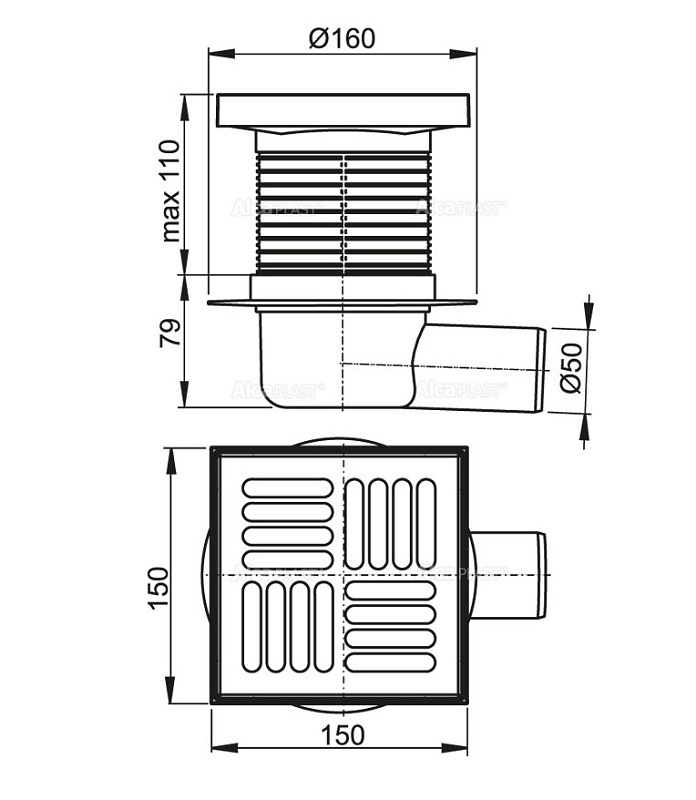 —Душевой трап Alcadrain с решеткой хром (APV5411)