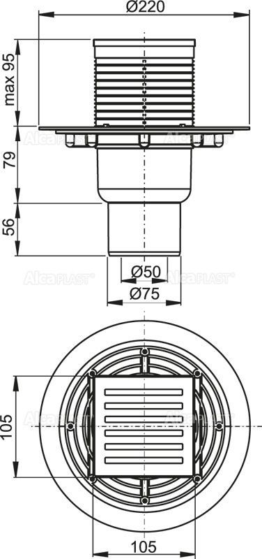 —Душевой трап Alcadrain 105х105/50/75 решетка из нерж стали (APV203)