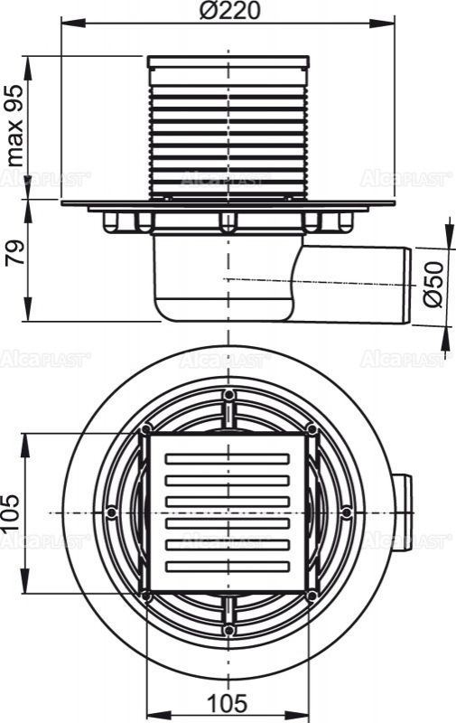Сливной трап AlcaPlast APV103 - предназначен для гидроизоляции напольных покрытий в бассейнах и душевых.