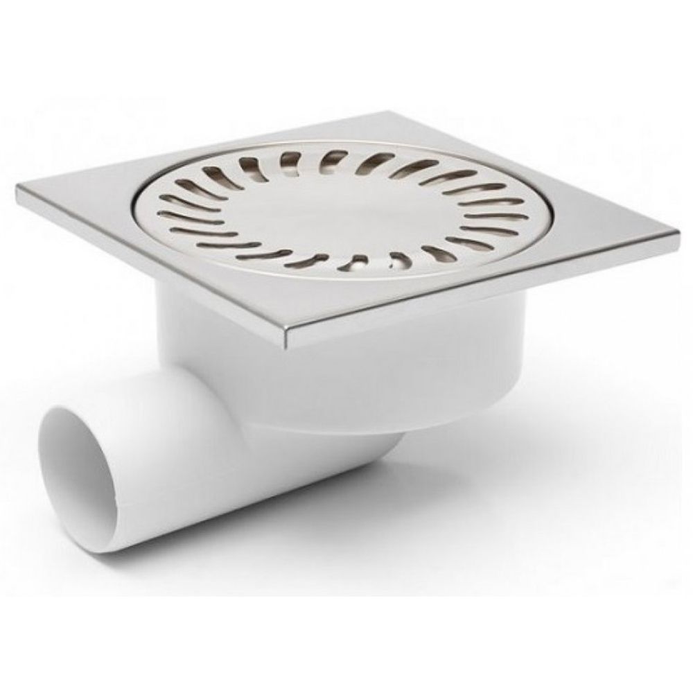 Душевой трап AZARIO НЕПТУН DN50/95 15х15см, пластик, боковой слив, решетка из нержавеющей стали (AZ-326 X N)