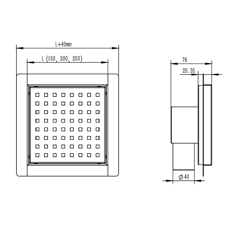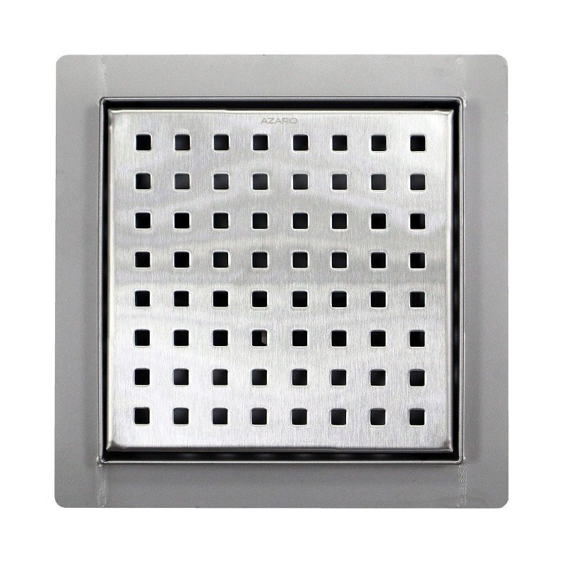 —Трап для душа AZARIO 150х150 цельнометаллический, перфорированная решетка, горизонтальный выпуск (AZZ1150)