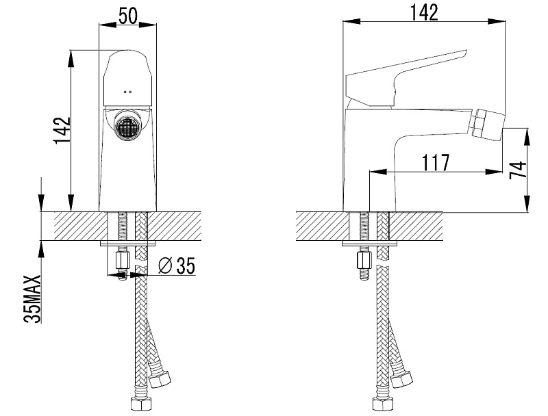—Смеситель для биде AZARIO CAMPO керамический картридж, хром (AZ-KX468275C)