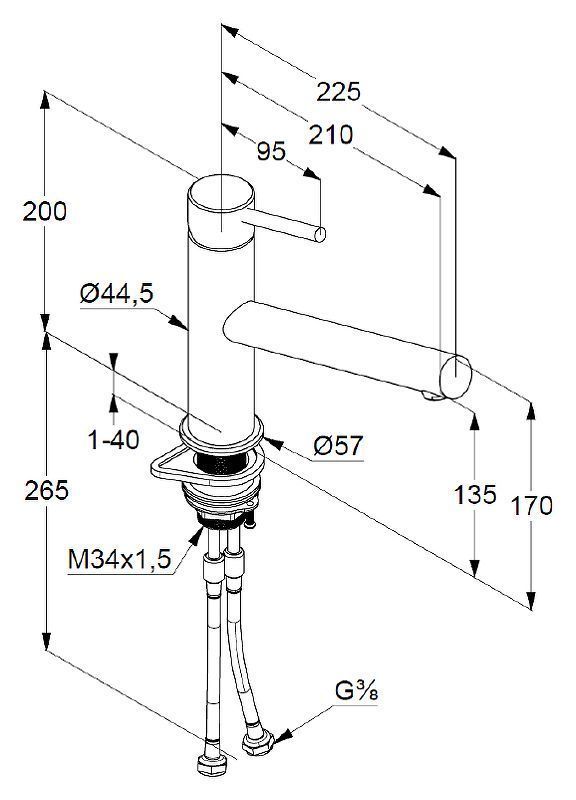 Подключение: гибкая подводка G 3/8.