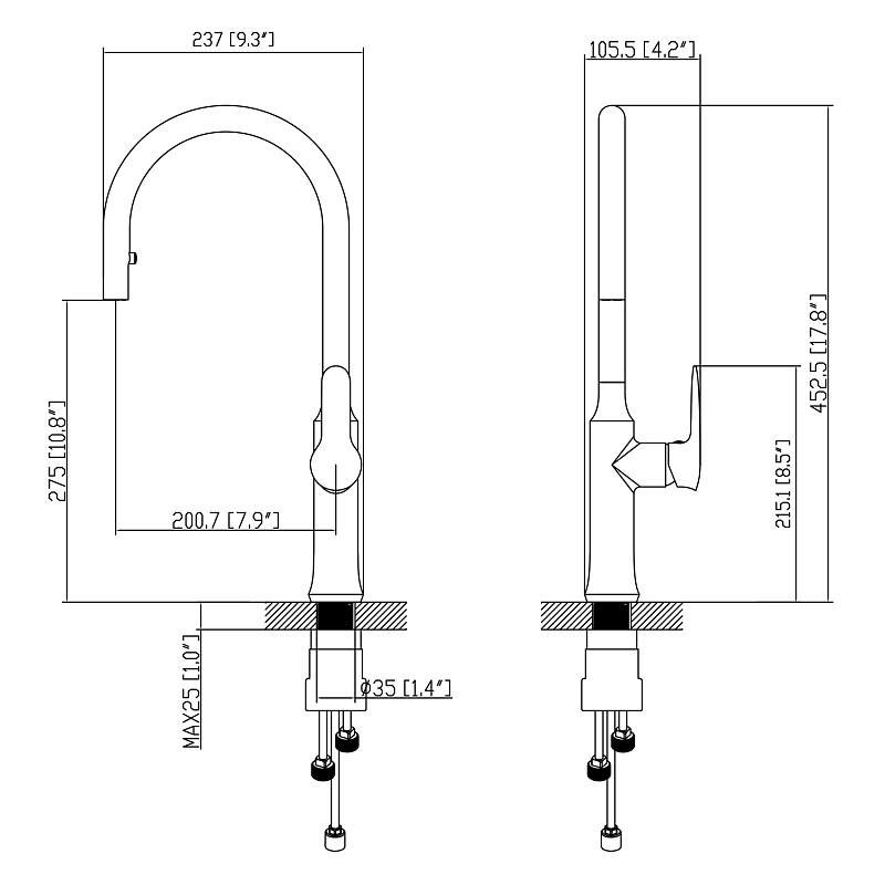 —Смеситель для кухни Azario, выдвижной излив, керамический картридж, хром (AZ-HU245913)