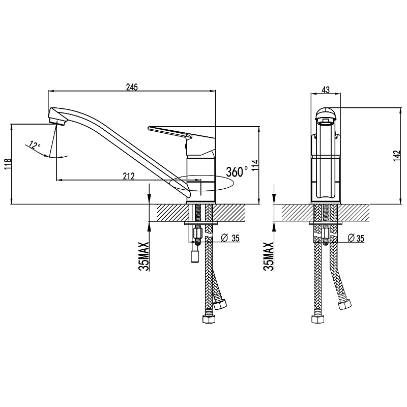 Смеситель для кухни Azario керамический картридж, хром (AZ-WSA654235AJ)