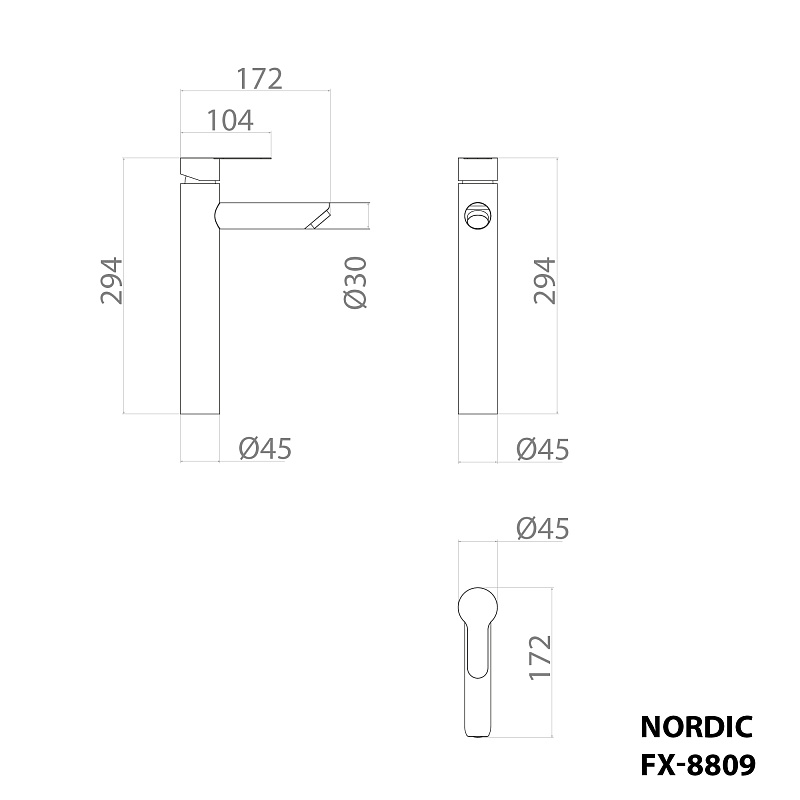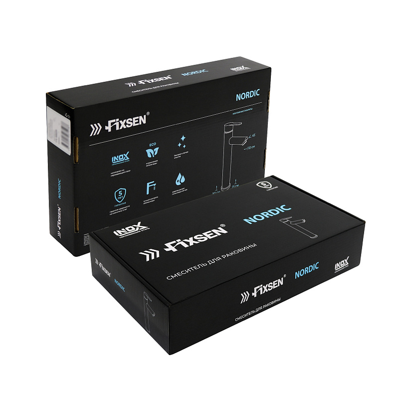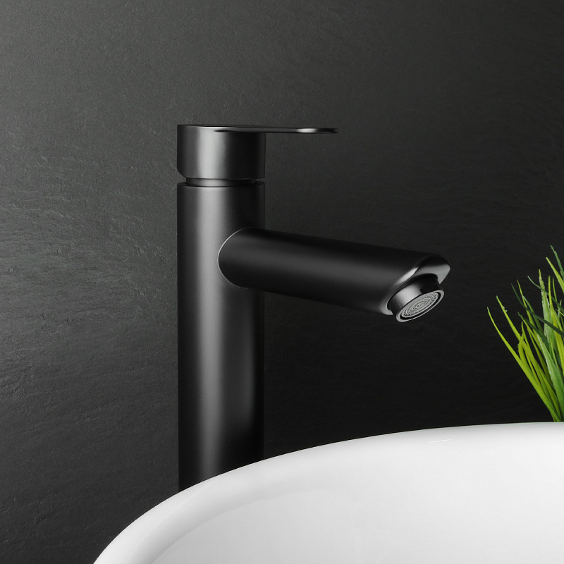 —Смеситель для раковины-чаши Fixsen NORDIC высокий излив, однорычажный, керамический картридж, черный (FX-8809B)