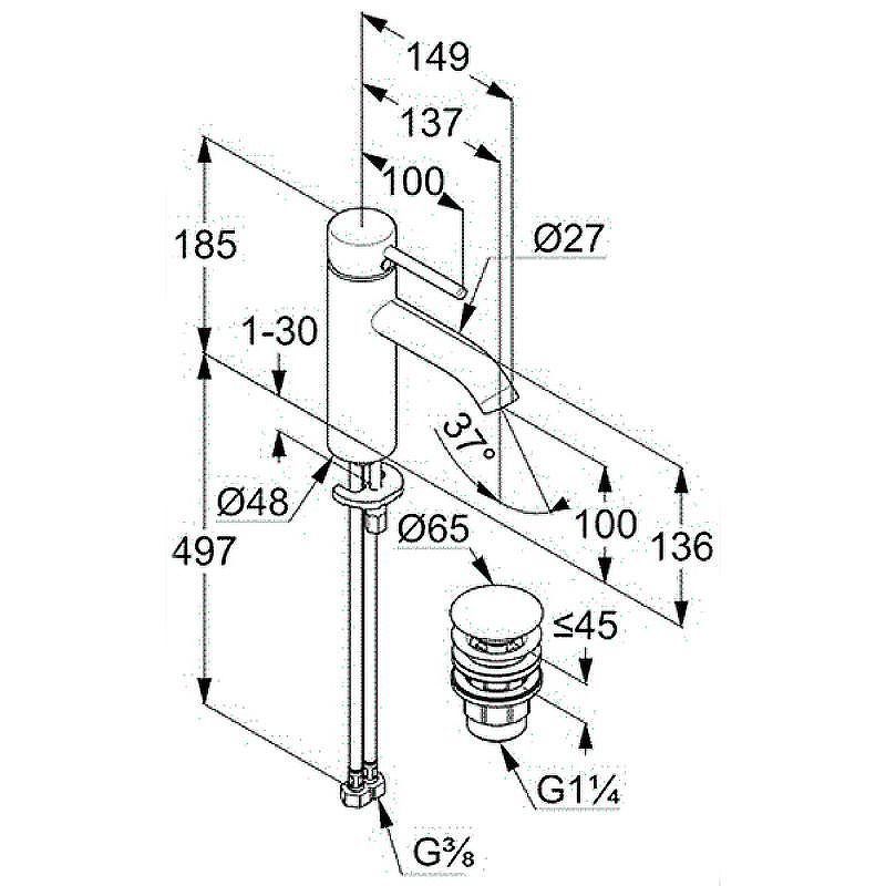 Смеситель для раковины Kludi Bozz 38288N076. Характеристики: