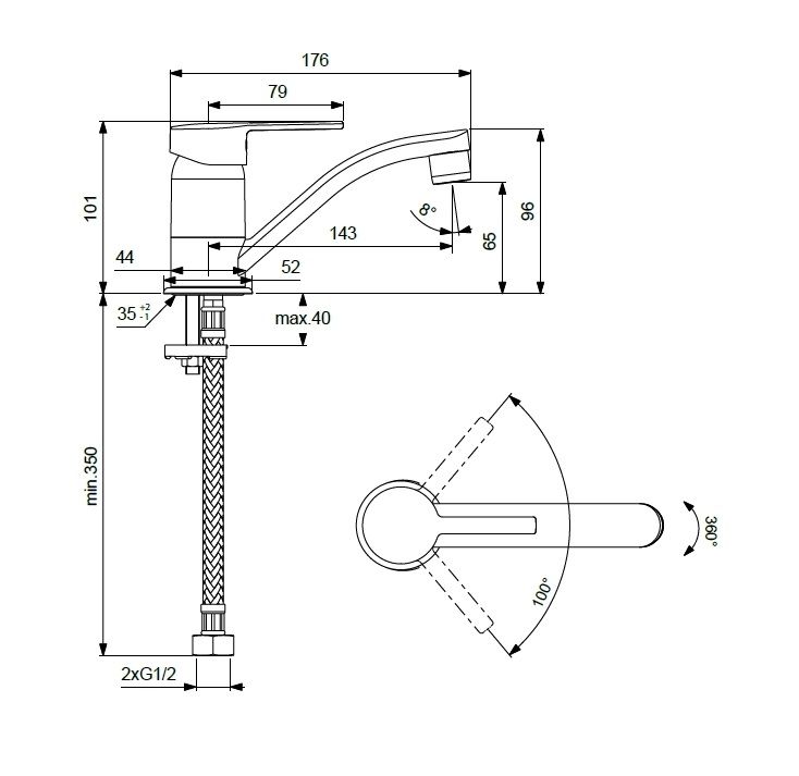 VIDIMA LOGIK Однорукоятковый смеситель для умывальника, система монтажа EASY-FIX (облегченный монтаж), трубчатый поворотный излив 143 мм, угол поворота 360˚, аэратор Perlator, керамический картридж 35 мм, металлическая рукоятка с индикаторами горячей / холодной воды, гибкая подводка G1/2", шланги стандартной длины 400 мм