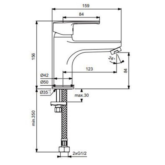 VIDIMA UNO GRANDE Смеситель для умывальника, без донного клапана, система монтажа EASY-FIX (облегченный монтаж), аэратор Perlator, керамический картридж 35 мм, металлическая рукоятка с индикаторами горячей / холодной воды, гибкая подводка G1/2", шланги стандартной длины 400 мм
