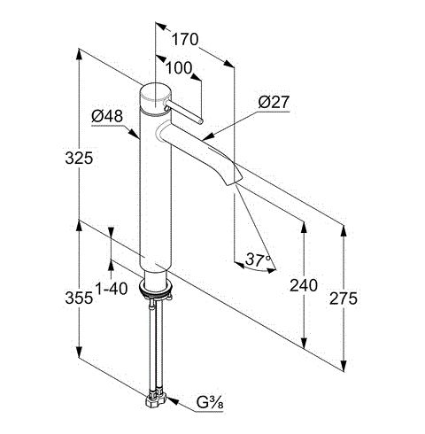 —Смеситель для раковины-чаши KLUDI BOZZ WHITE высокий, керамический картридж, белый матовый (382865376)